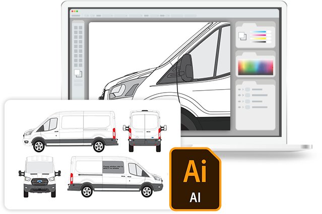 Work with PVO templates in your favorite design, sign making, or vehicle graphics software! Accurate vector images in