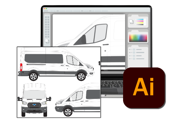 Utilisez les modèles de PVO dans votre logiciel de conception, de modélisation d’enseignes ou de graphisme de véhicules préféré ! Images vectorielles précises au format .ai.